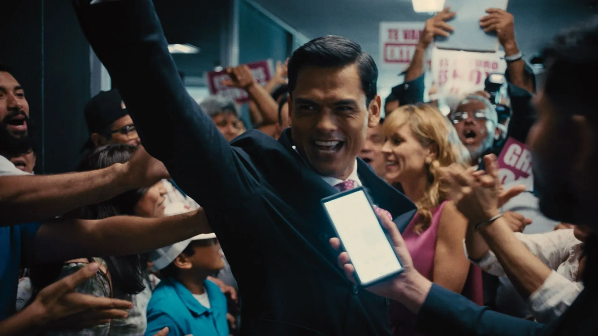 Cuauhtli: Tengo cierta fascinación, igual que Andrés, por observar. Andrés, aparte de ser director, es articulista político en México en un diario muy importante que se llama Reforma. Entonces él escribe haciendo crítica política de presidentes y gobernadores. En mi caso también he tenido siempre este interés en observar estas figuras. La construcción del personaje fue a partir de entender qué pasa con estos hombres. Siempre hablamos del ganador, no de los que se convierten en presidentes o ministros… ¿pero qué pasa con los que se quedan a punto de conseguirlo? Los que se quedan como esa segunda opción que es desechada y ya no llega a los libros de historia. Sin embargo, la construcción de sus carreras fue más o menos igual y la política es como la guerra, pero sin armas y sin violencia. Es esta necesidad de ser el centro de atención y esta posibilidad infinita de lograr lo que tú quieres. Andrés desde el principio hacía mucho hincapié en que esto era una comedia negra. Sin embargo, cuando yo la leí y vi el arco del personaje, lo que para mí tenía más sentido como actor es que el viaje de Chema era el de una tragedia en el sentido más estricto teatral. Lleva un crecimiento lógico en su carrera y llegado a cierto punto parece que el universo entero está en contra suya, pierde esta oportunidad, siente la mayor desilusión y el mayor fracaso, y entonces trata de encontrar una explicación a qué pasó y no la puede encontrar. De repente todo cambió en un segundo. Esto se junta con la insistencia de Carmina de retomar el proyecto, porque al final yo creo que estos dos personajes son uno solo, lo que pasa es que son dos caras. Y cuando Chema parece que está resignado a aceptar que se le fue la oportunidad de ser presidente, Carmina llega para recordarle que este fue un proyecto construido en conjunto y que tienen que seguir luchando por él. Pero él está tan herido al sentir esta traición, esta desilusión y fracaso, que lo que sucede es que ¡pum!, se nos enloquece, y creo que eso es porque hace contacto con su ego, ¿no?