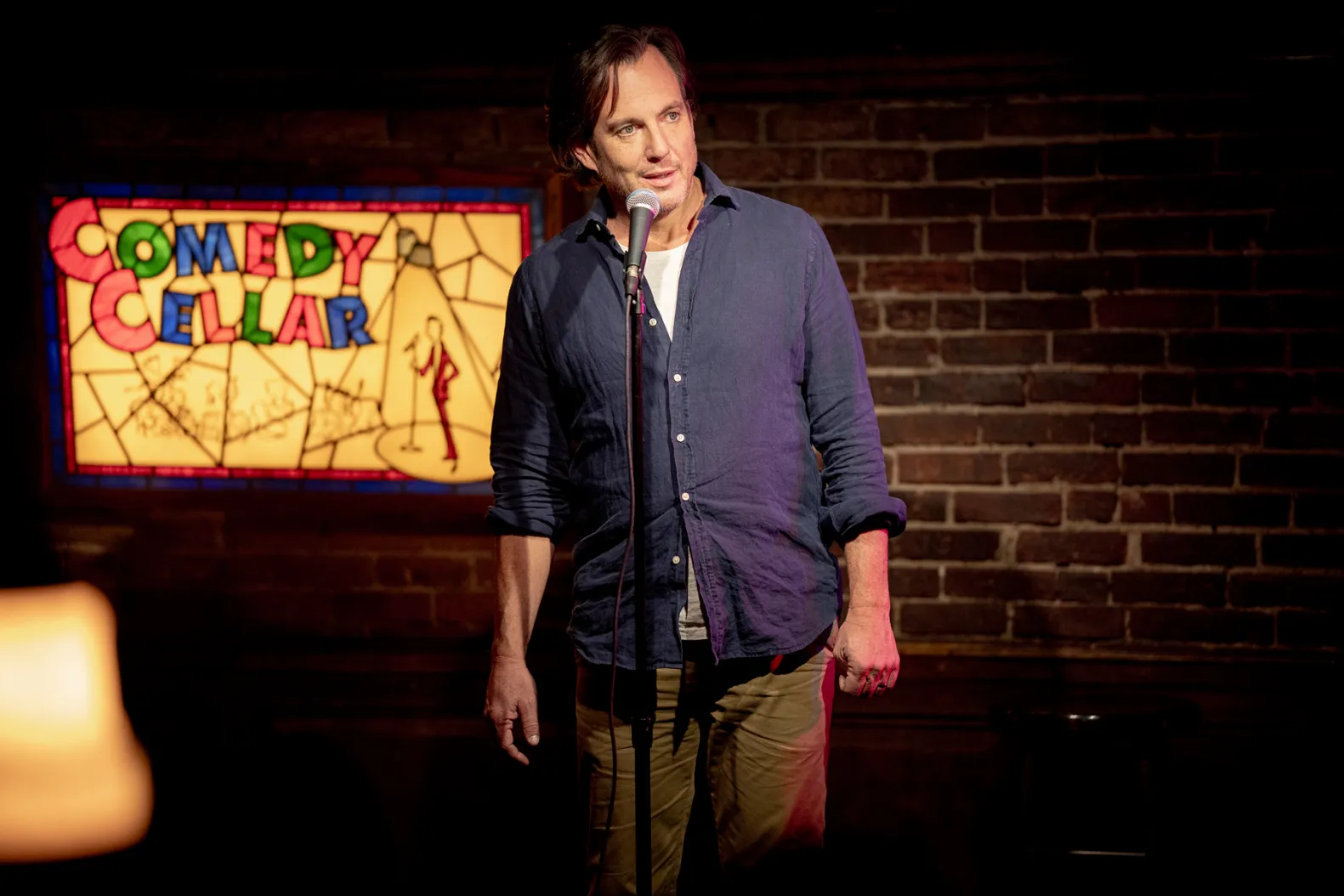 Este cambio radical en la vida del protagonista lo lleva a un estado de incomprensión del mundo que lo arrastra a probar suerte, casi por accidente, en el mundo del stand-up neoyorkino. Resulta imposible no pensar en La maravillosa señora Maisel, pues el punto de partida es idéntico; sin embargo, la serie de Amy Sherman-Palladino partía de un contexto que lo hacía mucho más interesante, con más riesgo. Al fin y al cabo, Miriam Maisel debía enfrentarse como mujer traicionada a un mundo tan misógino como la comedia neoyorkina de los años cincuenta. El caso de Sin conexión es distinto, pues el protagonista es bien recibido, y salvo la vergüenza que siente por hacer algo tan impropio, su nuevo hobby no afecta demasiado a su estilo de vida.